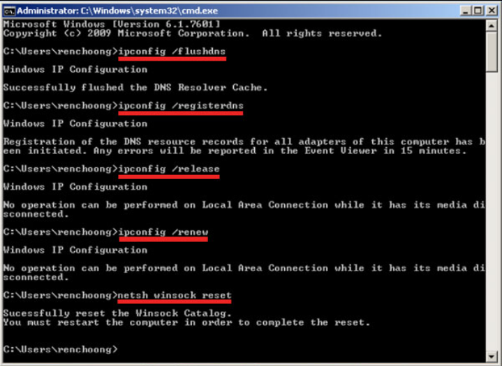 | Reset Method | Net Internals | Command Prompt |